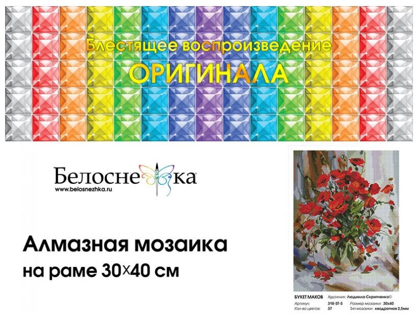 Отзывы на Алмазная мозаика Белоснежка 318-ST-S Букет маков / 30х40 см. / На подрамнике / Полная выкладка