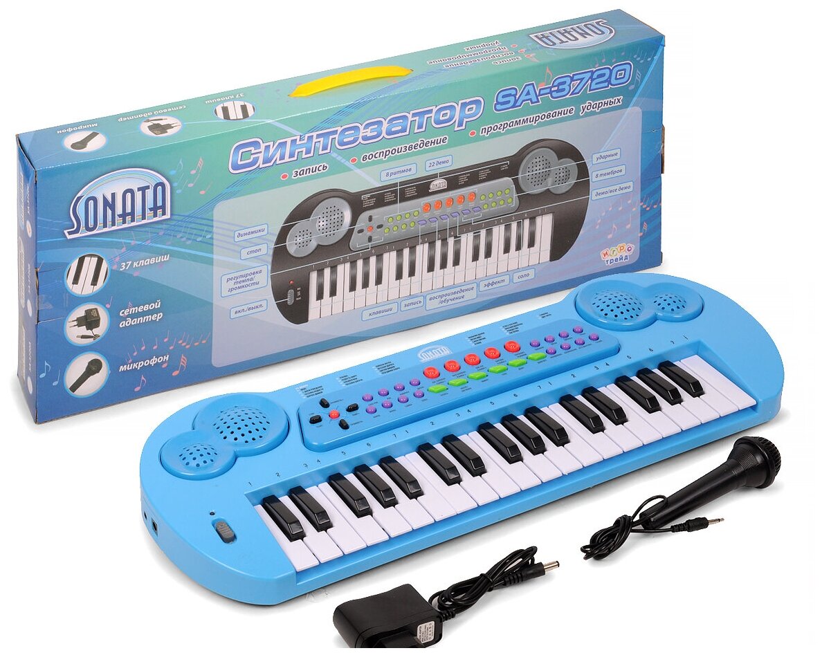 10 цен на Синтезатор "SONATA" с микроф, руссиф., инстр-ия, панель. 37 клав, 8 тембр, 7 ритм, 22 демо мелодии, 4 вида ударных, цвет в ас-те в/к 53*20*6 см SA-3720