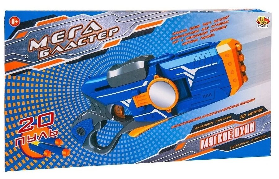 10 цен на Бластер Abtoys Мегабластер синий с 20 мягкими пулями, в коробке PT-00925