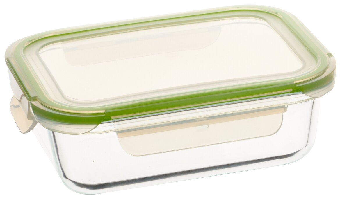 Контейнер 640мл стекл. прямоуг Appetite зел, пласт.кр.