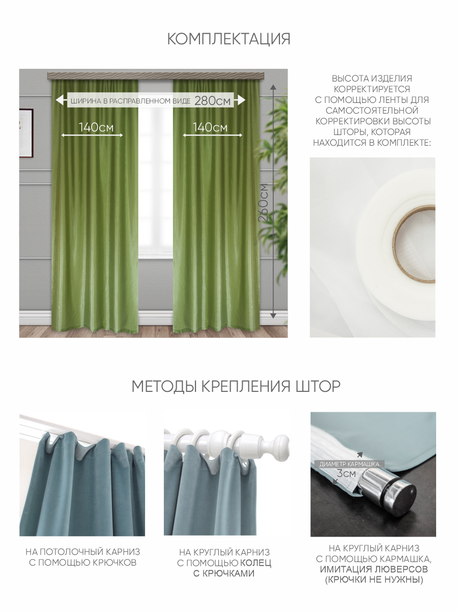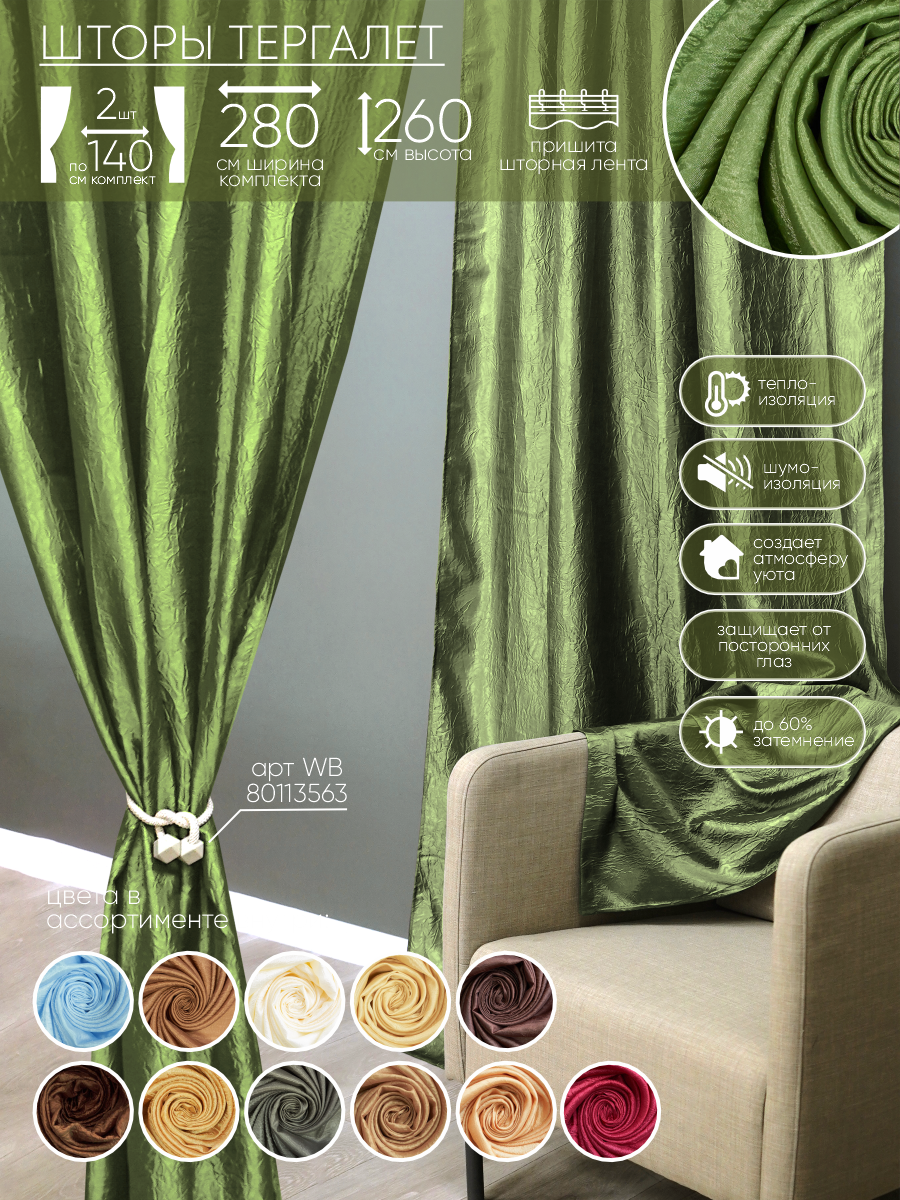 Шторы Witerra портьерные Тергалет зеленый 140*260 - 2шт информация: