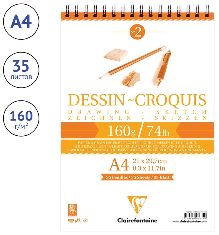 10 цен на Блокнот 35 листов Dessin croquis, А4 (210х297 мм), 160 гр/м2, целюлоза, спираль, артикул 96674