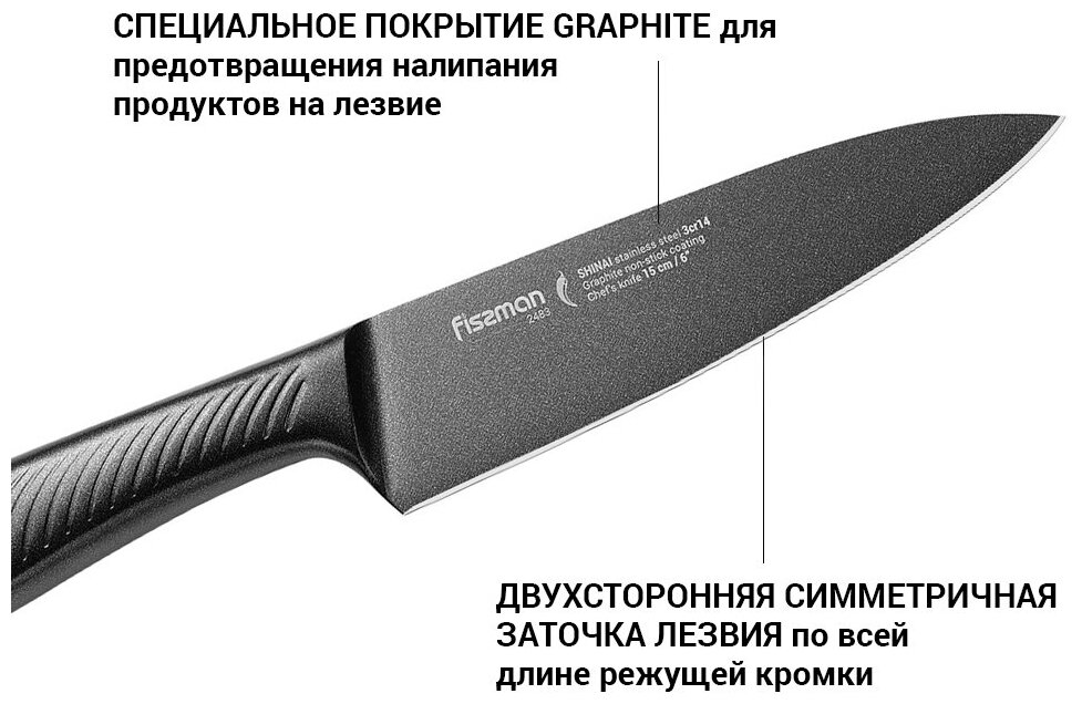 2483 FISSMAN Нож Поварской SHINAI 15см с покрытием Graphite (3Cr14 сталь) информация: