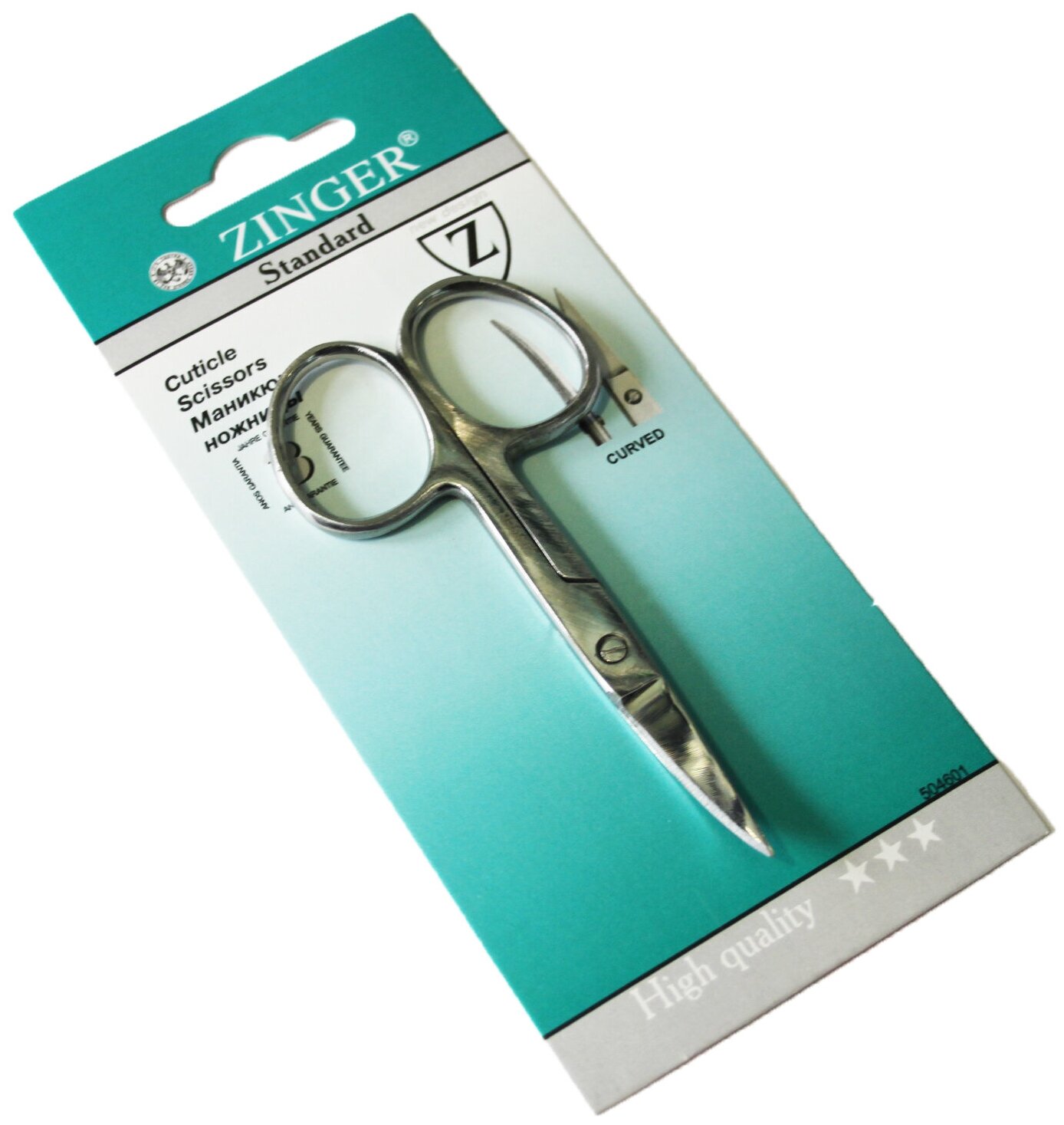 ZINGER Ножницы маникюрные, загнутые, широкие, 9 см, на блистере, цвет серебристый, В-116-S-SH