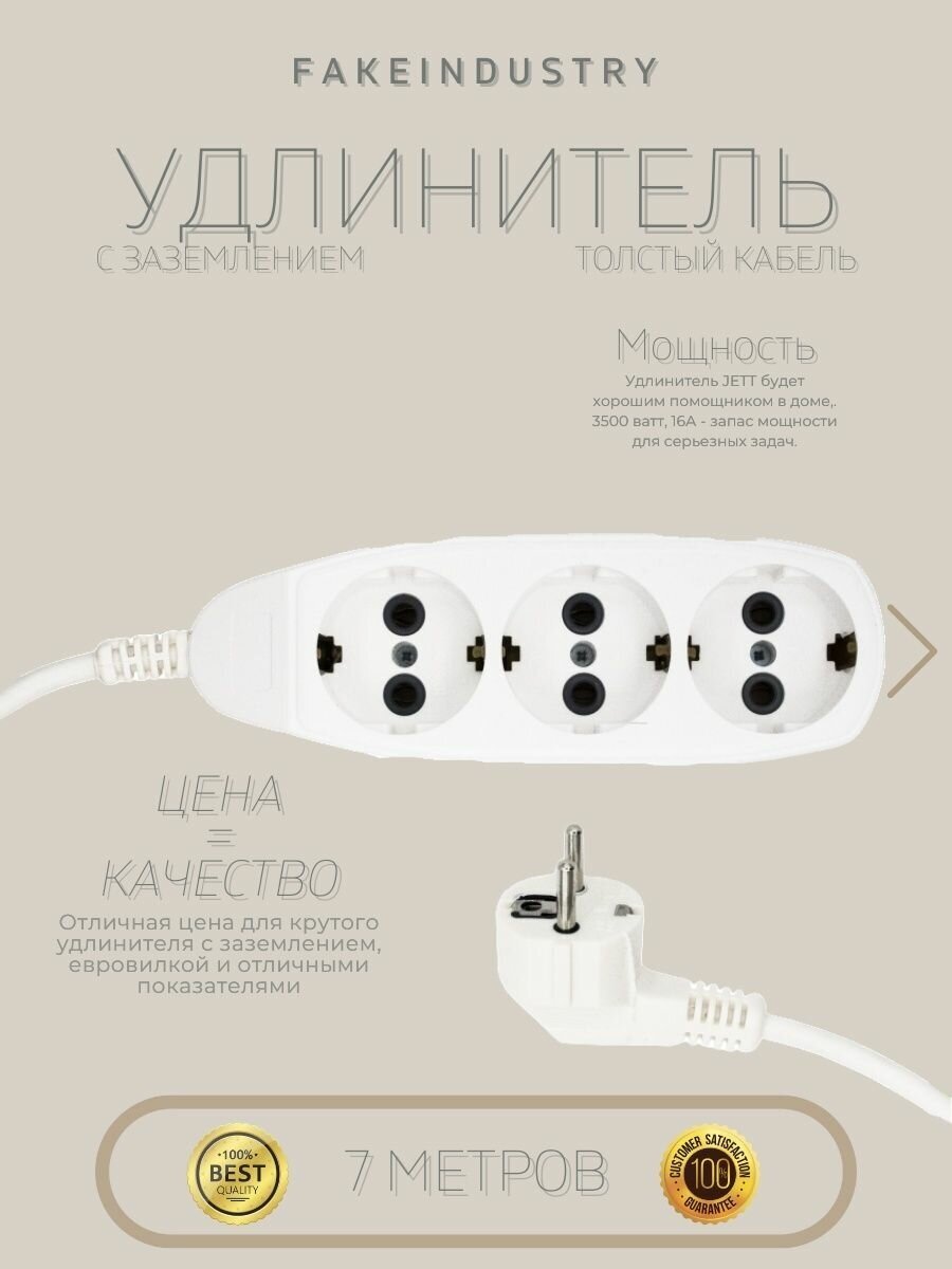 Сетевой удлинитель JETT на 3 розетки / С заземлением / 7 метров 569 ₽
