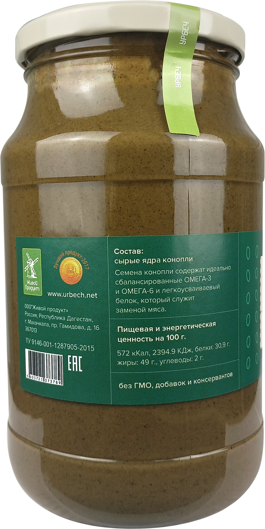 Урбеч Живой Продукт из очищенных ядер конопли 965 грамм