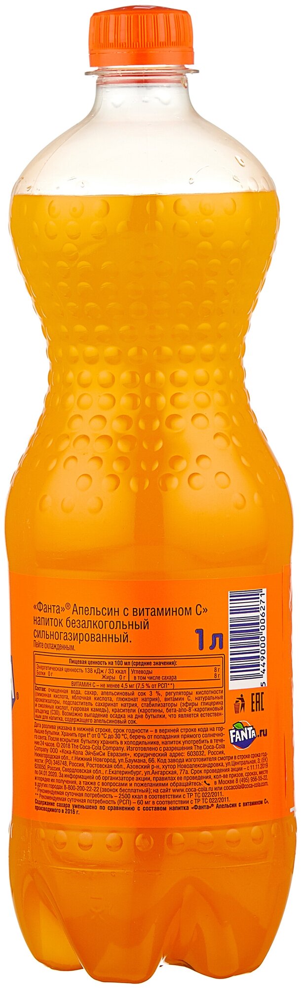 Газированный напиток Fanta, 1 л, 12 шт. информация: