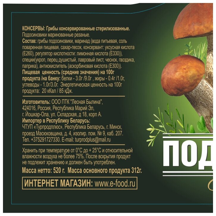 Грибы Подосиновики маринованные, 520г ECOFOOD информация: