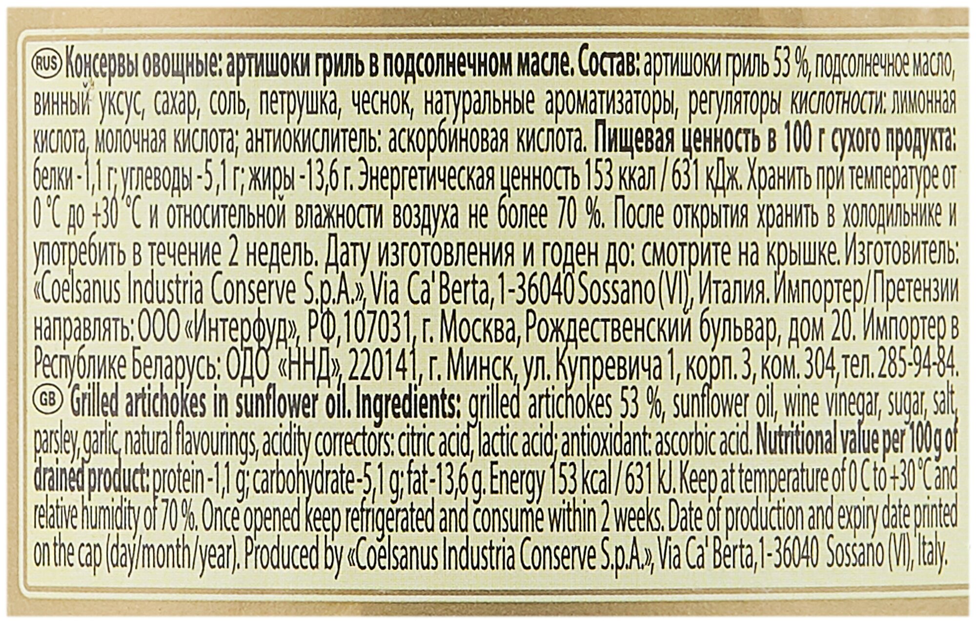 Артишоки гриль в подсолнечном масле Federici, 280 г информация: