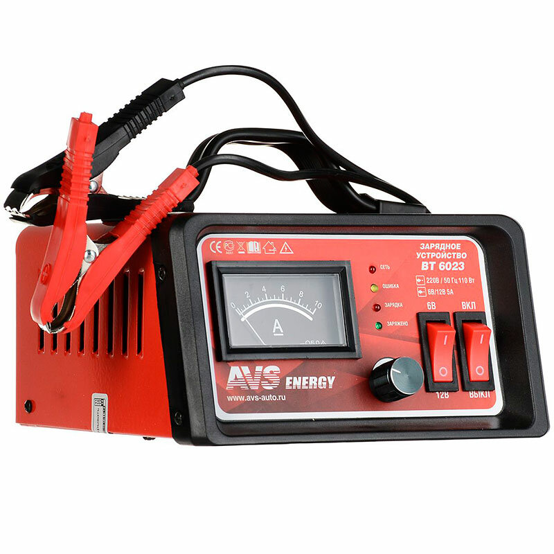 Зарядное устройство для автомобильного аккумулятора AVS BT-6023 (5A) 6/12 В, 60 Вт, красный/черный 4 352 ₽
