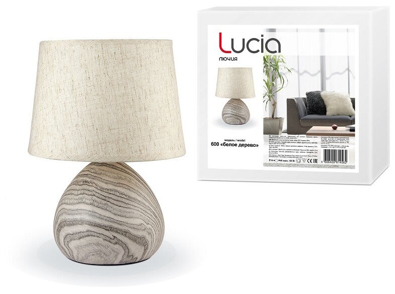 Лампа Lucia Белое дерево 600, E14, 60 Вт, цвет арматуры: серый, цвет плафона/абажура: серый информация: