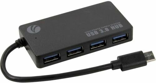 USB-концентратор VCOM DH302C, разъемов: 4, черный