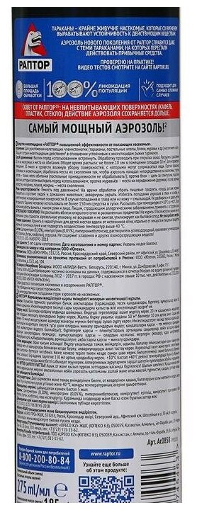 10 цен на Аэрозоль Раптор повышенной эффективности от самых живучих тараканов, 275 мл