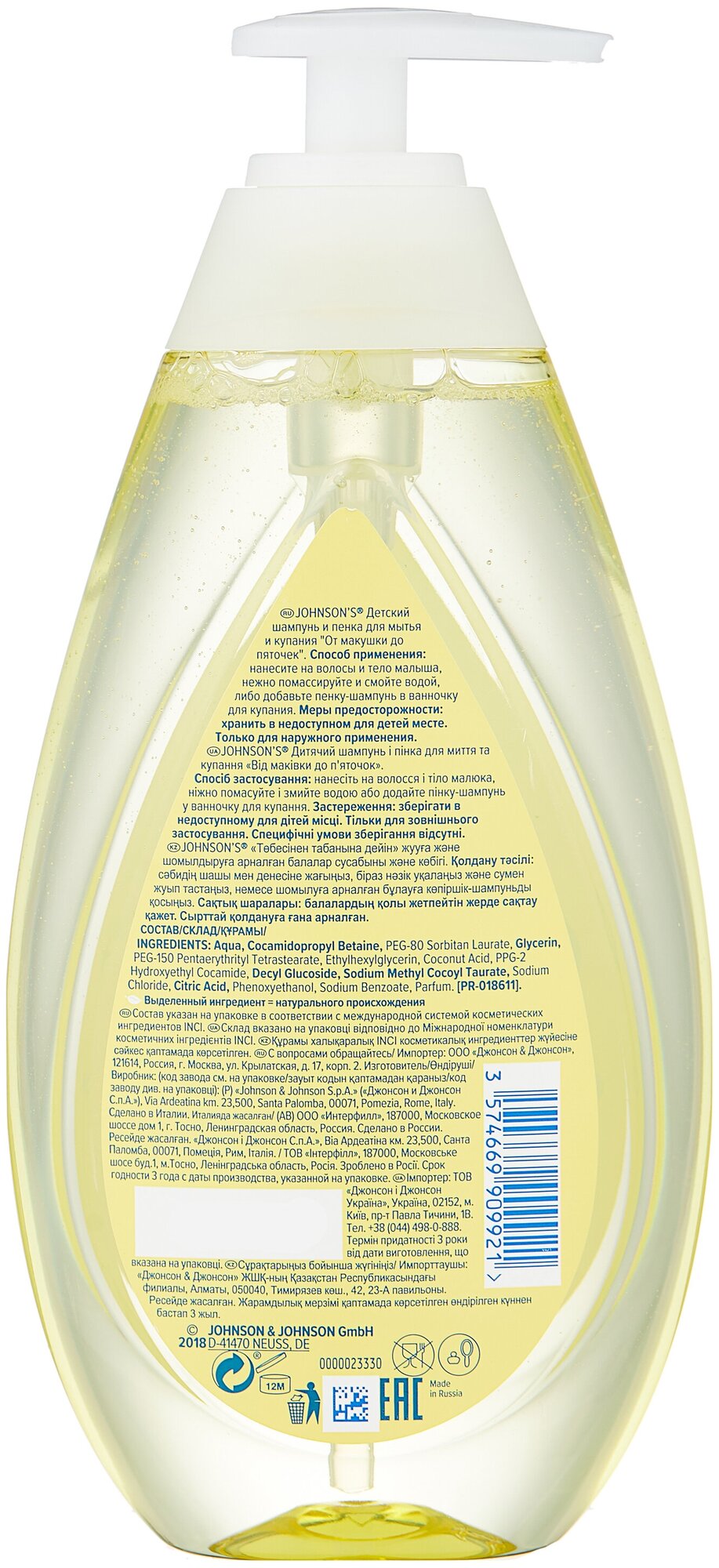 Johnson's Baby Шампунь и пенка для мытья и купания От макушки до пяточек, 500 мл