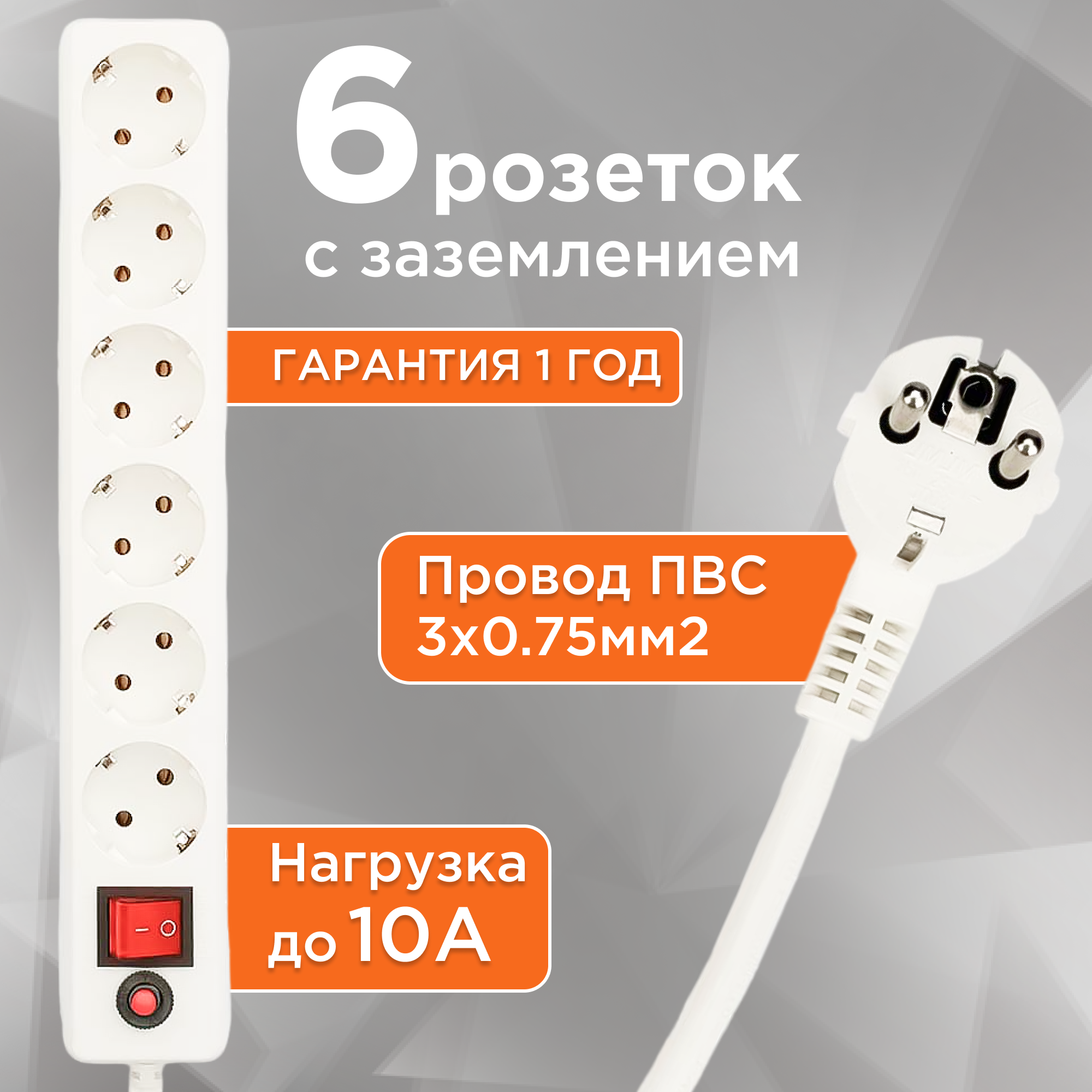 Сетевой фильтр Гарнизон ЕНW-15 5.0 м 6 розеток белый 724 ₽