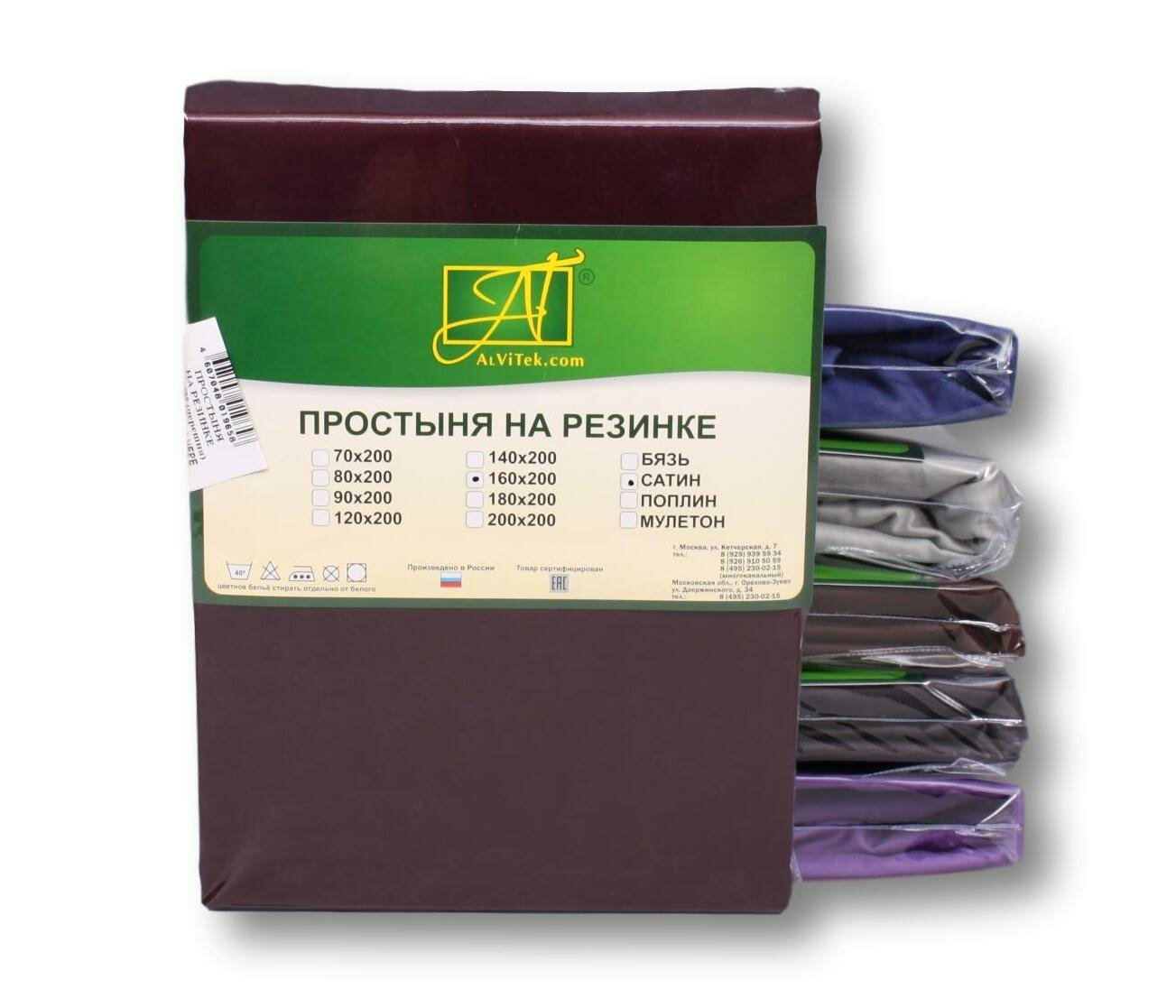 Простыня на резинке из сатина альвитек мокко 90х200х25