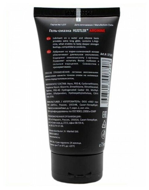 Гель-смазка водно-силиконовая стимулирующая ARGININE Hustler, 75 мл