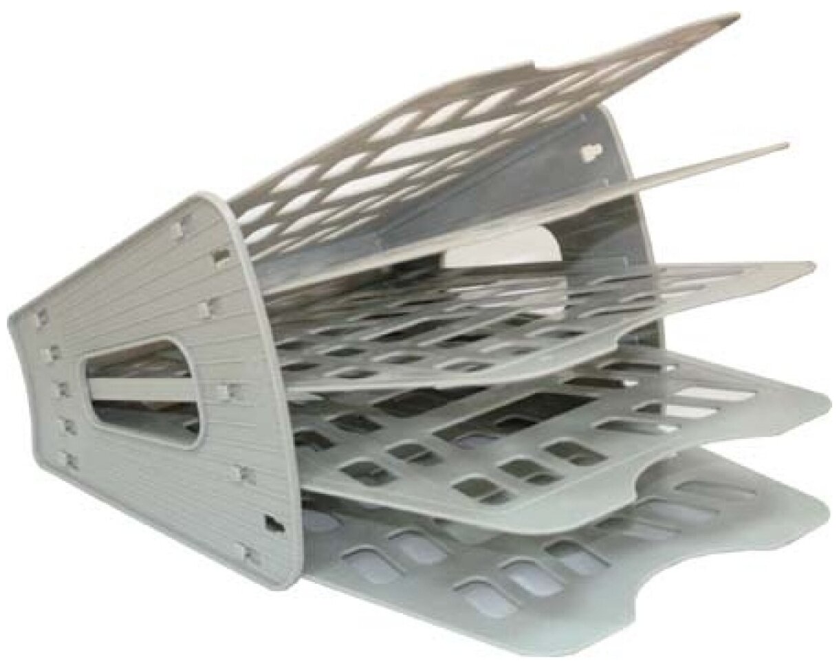 Лоток для бумаг 5-ти секционный, 4 отделения, серый, ЛТ90