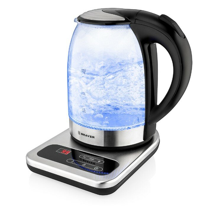 Отзывы на BRAYER Чайник электрический BRAYER BR1003, стекло, 1.7 л, 2200 Вт, регулировка t°, серебристый