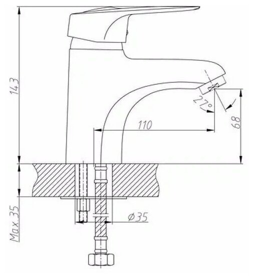 Смеситель для умывальника 40к HB1004 HAIBA с/отв п/шпильку 2 336 ₽