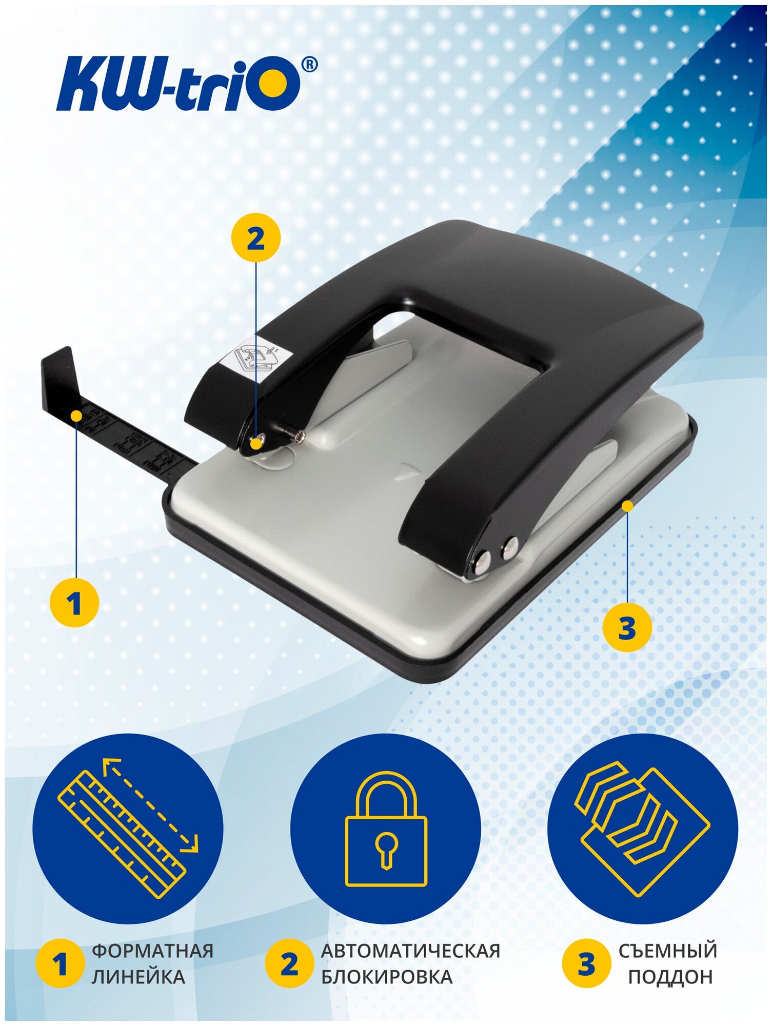 10 цен на Дырокол Kw-Trio Stylish Heavy Duty 976GR/BLCK макс.:40лист. металл черный отв.:2 с линейкой