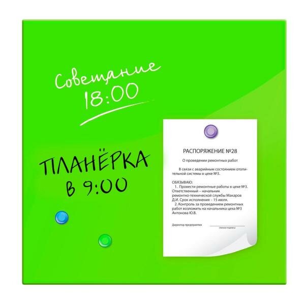 Доска магнитно-маркерная стеклянная (45×45 см), 3 магнита, зеленая, BRAUBERG 3 085 ₽