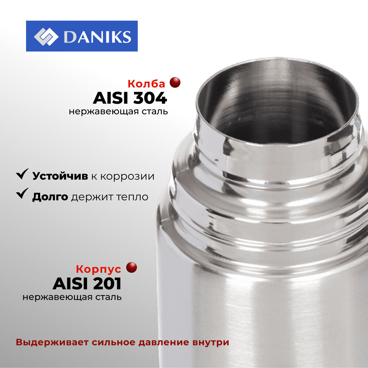 Термос нержавеющая сталь, 1.2 л, узкая горловина, Daniks, колба нержавеющая сталь, серебристый