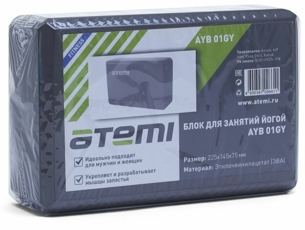 Блок для йоги Atemi, Ayb01gy, 225х145х75, серый информация: