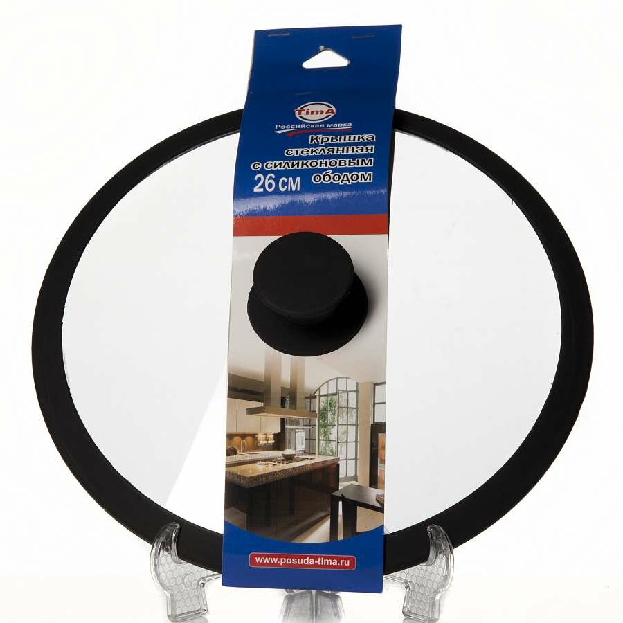 Крышка стеклянная с черным силиконовым ободом Tima 26 см