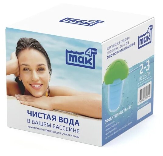 Дезинфицирующее средство MAK (химия) 4 мини, для воды в бассейне, комплексный препарат, в плавающем диффузоре (10440)