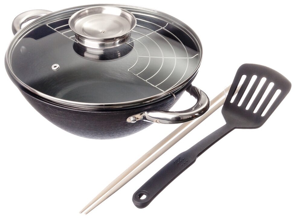10 цен на SATOSHI Казан чугун,26см,3л,антипр.покр, нерж.ручк, решетка, стекл.крыш,нейлон.лопатка,бамб.палочки