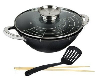 Казан чугун,26см,3л,антипр.покр, нерж.ручк, решетка, стекл.крыш,нейлон.лопатка,бамб.палочки SATOSHI 808-029