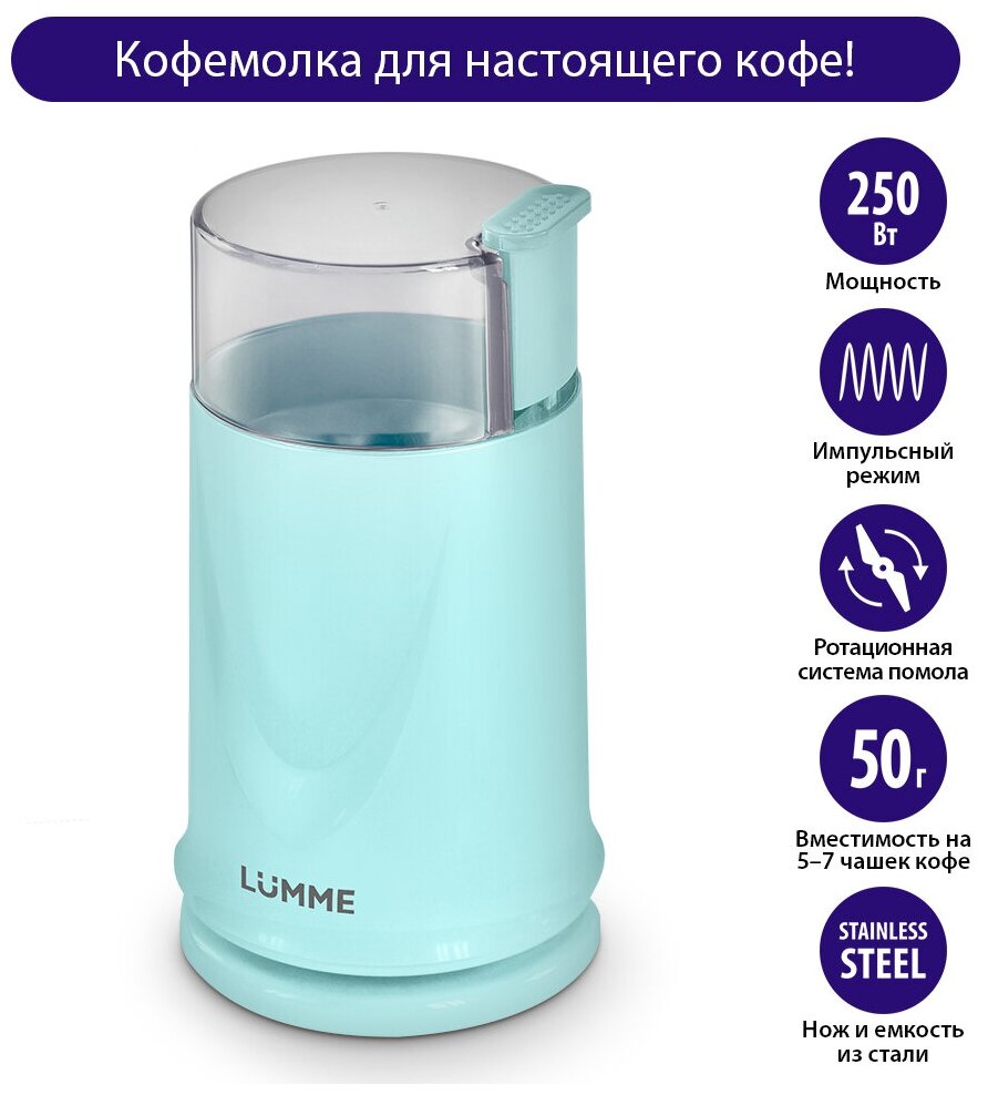 Кофемолка электрическая LUMME LU-2605 / 250 Вт / синий сапфир