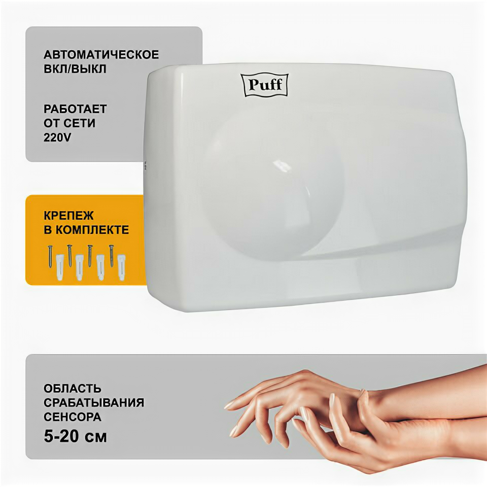 Сушилка для рук Puff PUFF-8828W белый 600796 6 109 ₽