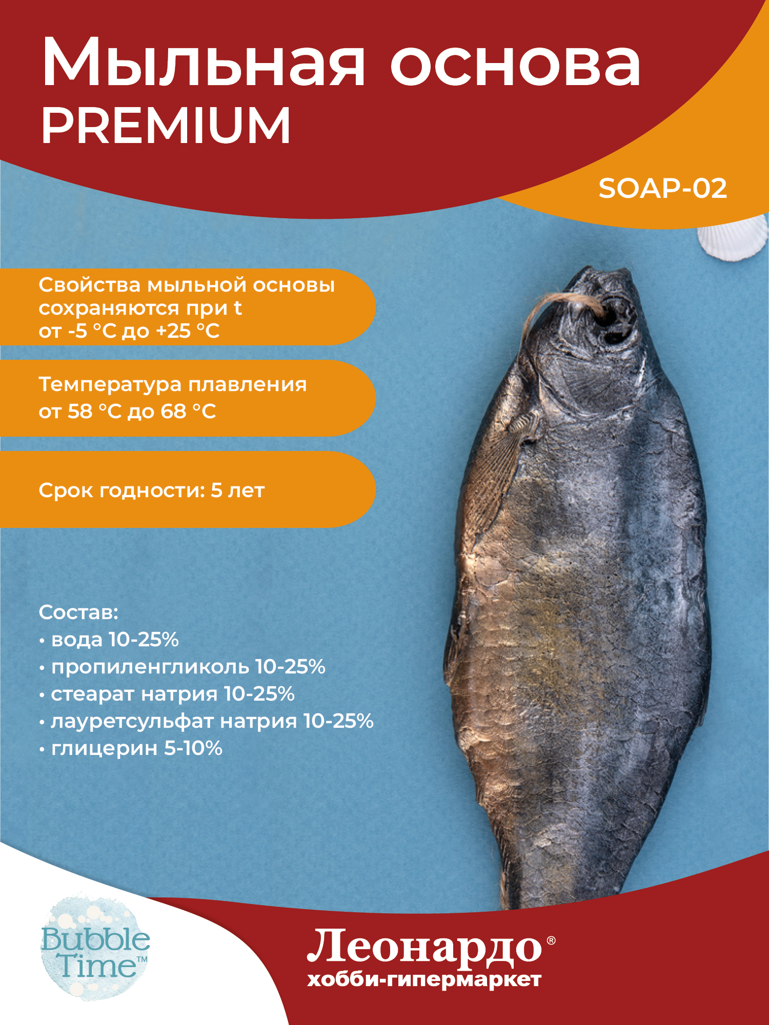Мыльная основа "BUBBLE TIME" SLS free SOAP-02 "PREMIUM" 1 кг 02 белая информация: