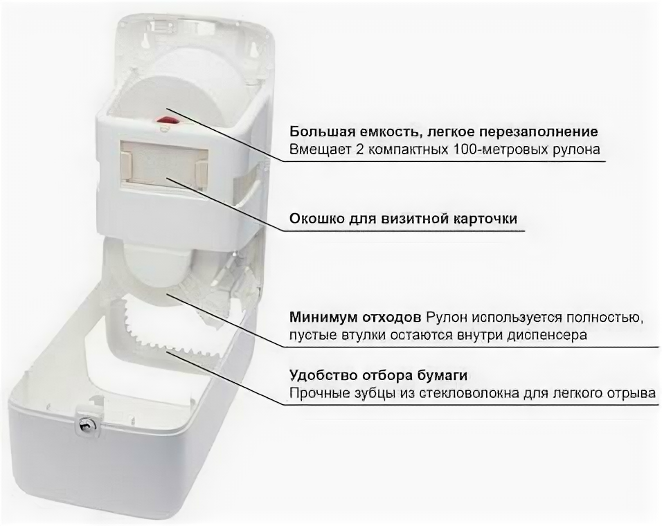 Диспенсер для туалетной бумаги Tork Т6, рулонный, для миди-рулонов, белый 8 959 ₽