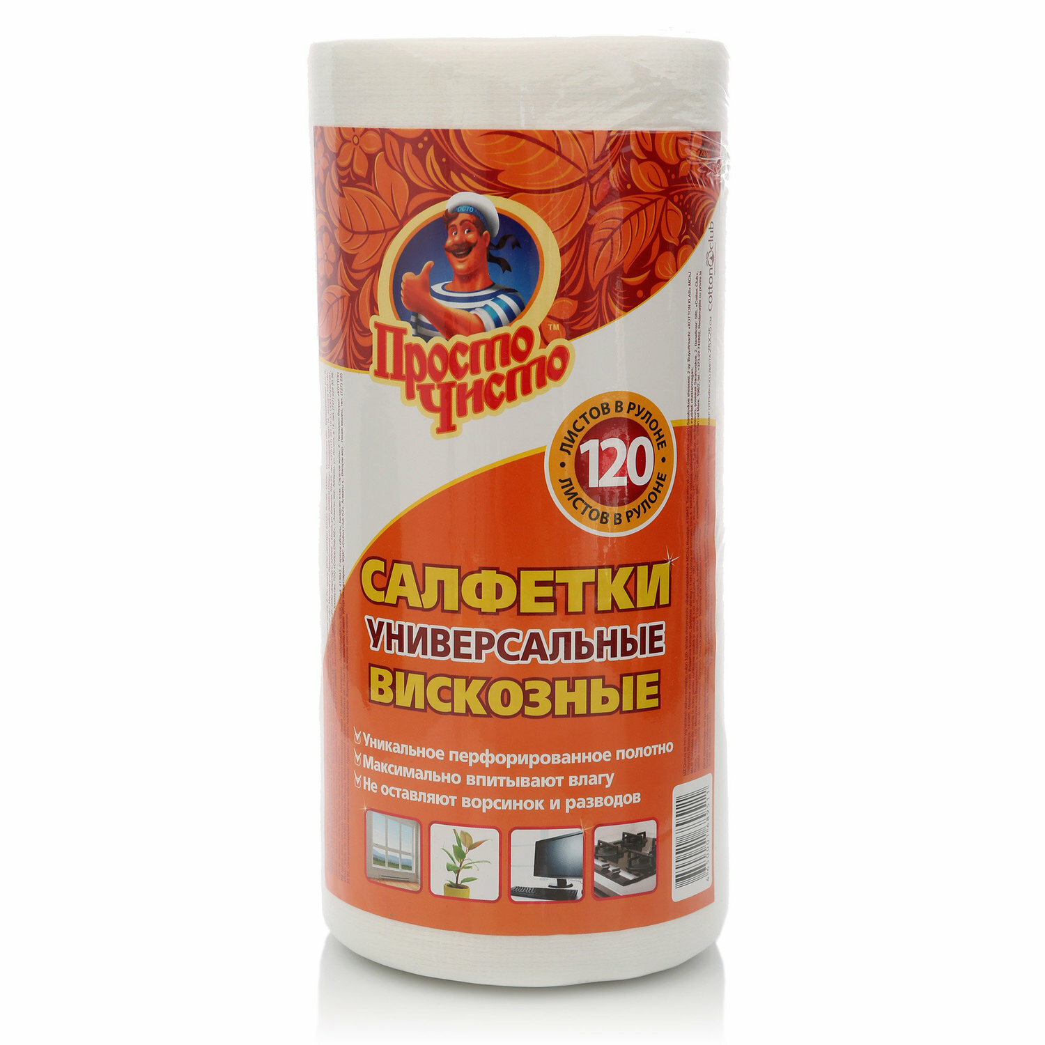 Салфетки для сухой и влажной уборки Просто Чисто ,120 штук в рулоне, цвет белый - Cotton Club - QUALITA информация: