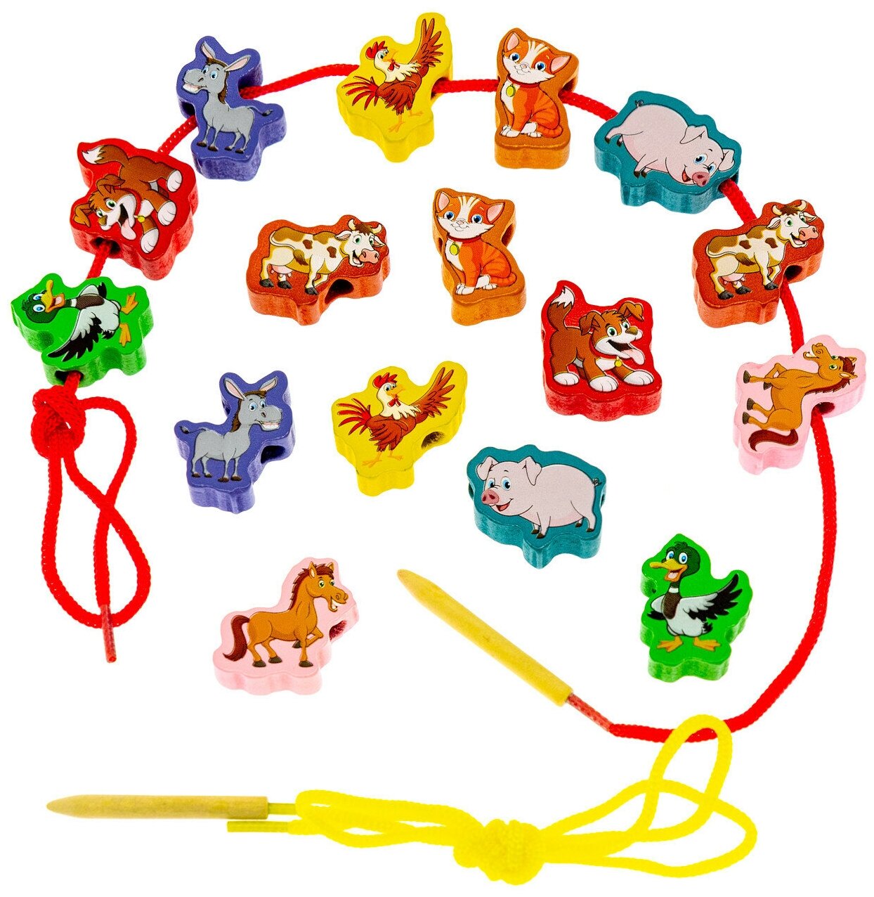 10 цен на Развивающий набор шнуровка - Домашние животные, игрушка для развития мелкой моторики для детей, Монтессори
