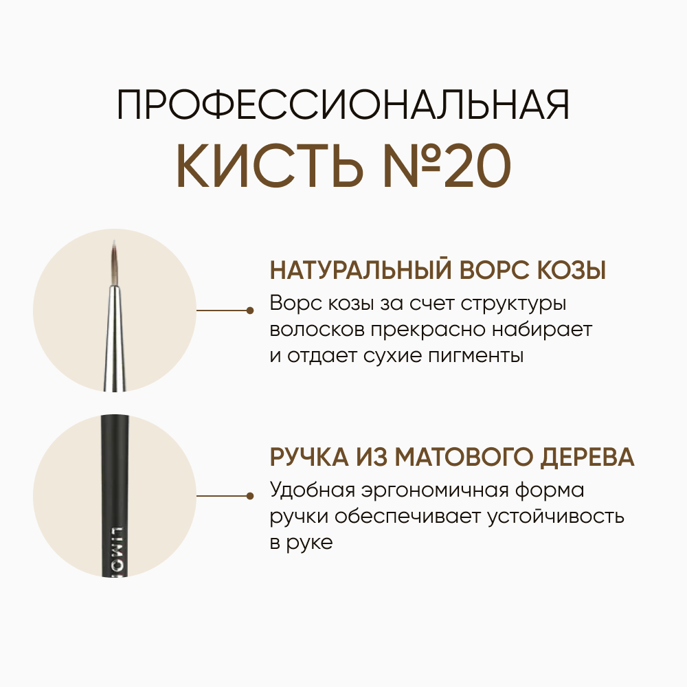 Кисть для теней нейлон №20 / Для подводки и бровей / Professional LIMONI информация: