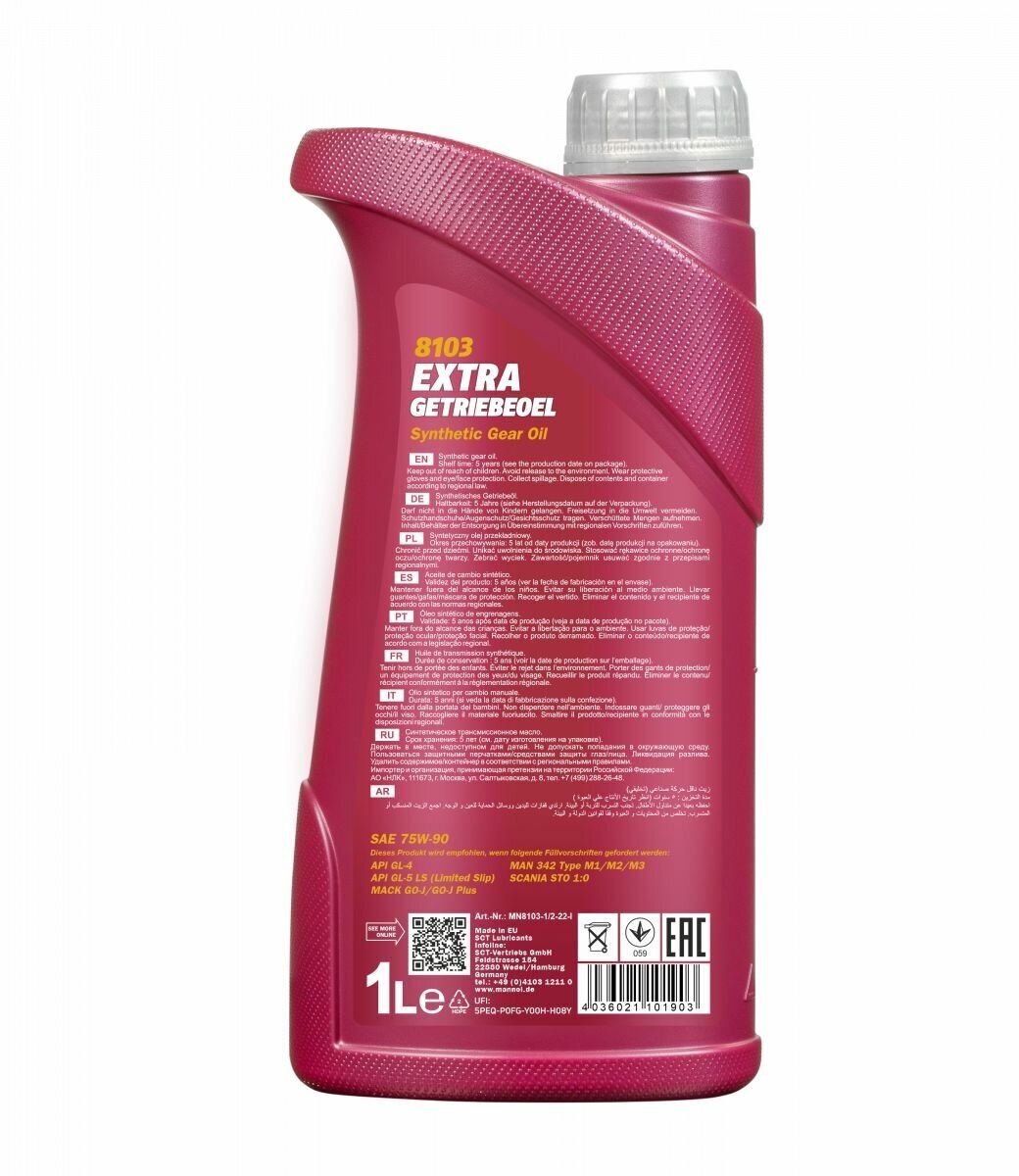 Масло Трансмиссионное Mannol 8103 Extra Getriebeoel 75W-90 Синтетическое 1 Л (Gl-4/Gl-5) MANNOL арт. MN8103-1
