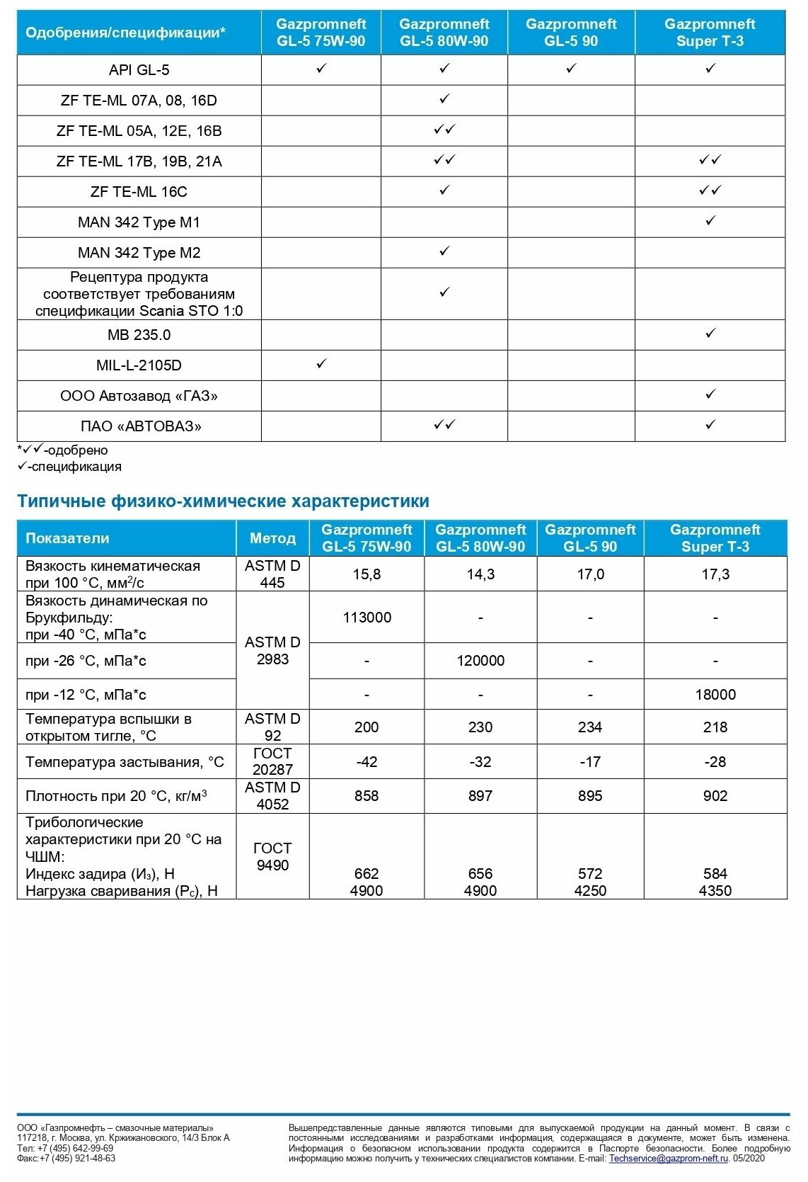 GAZPROMNEFT Масло трансмиссионное Gazpromneft 80W-90 GL-5 2389901362, (4л) информация:
