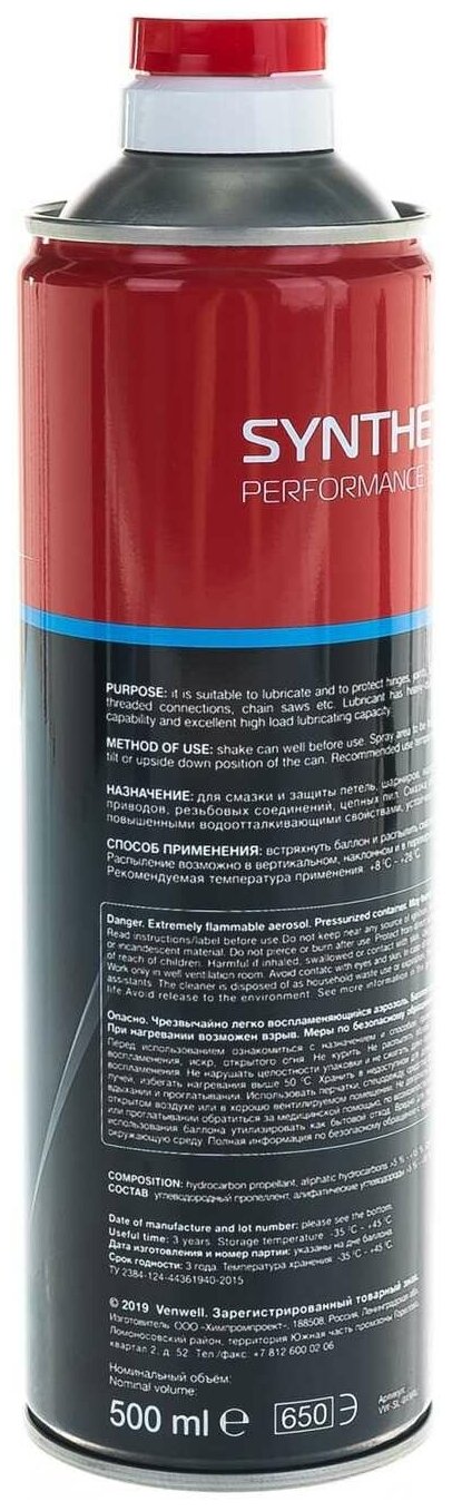 VENWELL VW-SL-019RU Смазка cпрей Venwell SYNTHETIC Performance Spray адгезионная 500 мл VW-SL-019RU