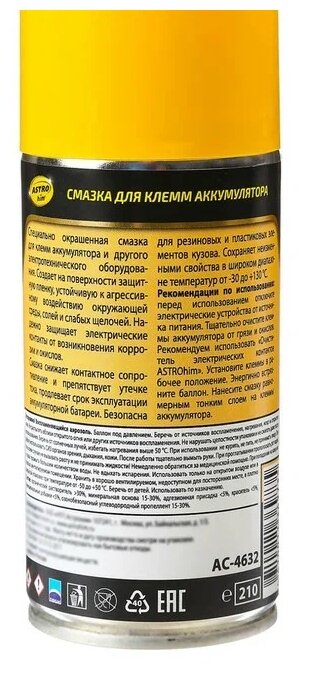 Ас-4632 210мл Смазка Для Клемм Акб (Аэрозоль) ASTROHIM арт. AC-4632