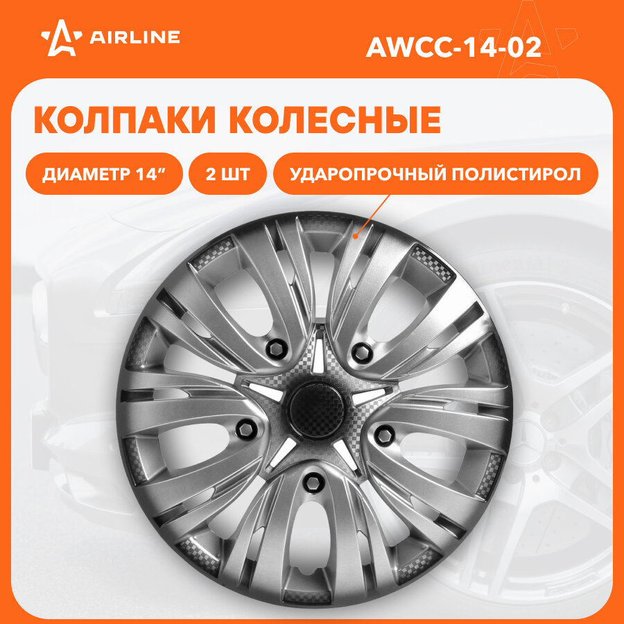 AIRLINE AWCC-14-02 (AWCC1402) колпаки колесные 14 лион +, серебристо-черный, карбон, компл. 2 шт. (aw