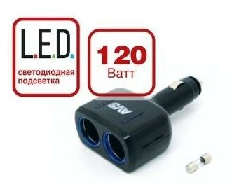 Разветвитель розетки для прикуривателя avs на 2 выхода со светодиодной подсветкой cs205 информация: