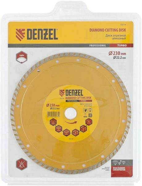 Диск алмазный отрезной Turbo, 230 х 22,2 мм, сухая резка// Denzel информация: