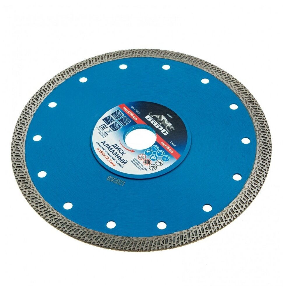 Диск алмазный Барс Сплошной ф180х22,2 мм, тонкий, сухое/мокрое резание 73095