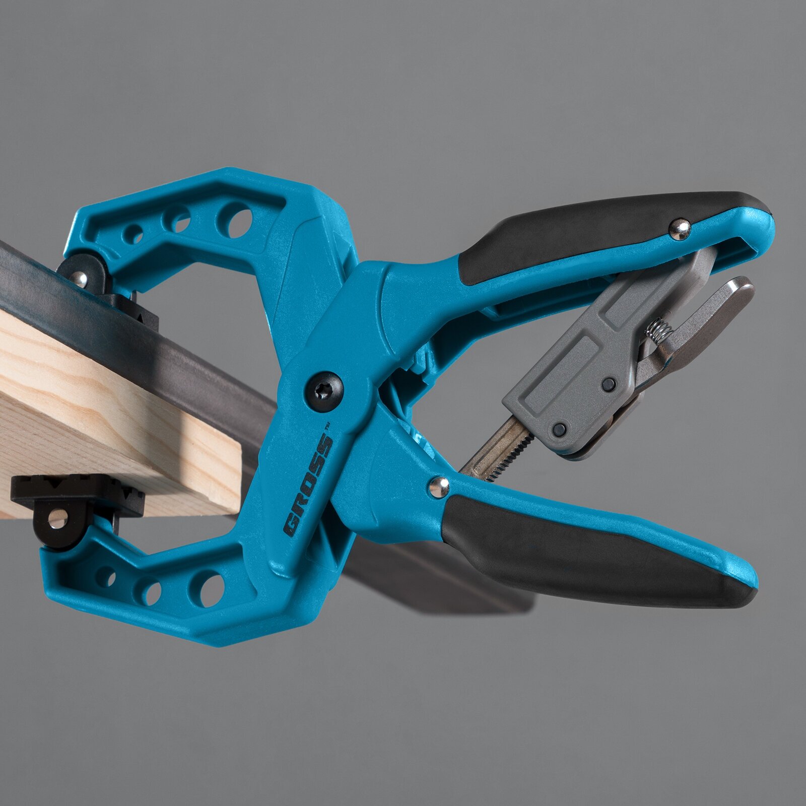 Струбцина ручная Gross (20803) клещеобразная пластиковая с храповым механизмом 58 мм