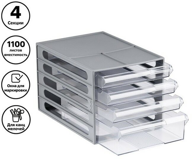 Блок из 4 выдвижных лотков Стамм, серый корпус, прозрачные лотки (арт. 323302)