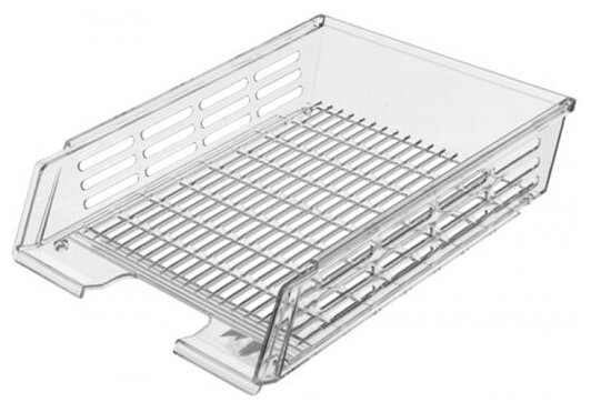 Лоток горизонтальный для бумаг с пазами, А4 (360х270х75 мм), сетчатый, прозрачный, ЛТ77